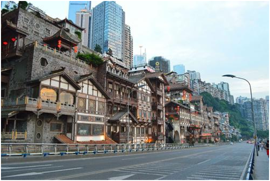 關(guān)于光色選擇,暫時(shí)拋開(kāi)建筑屬性不論,這里重點(diǎn)討論位置因素。洪崖洞位于重慶CBD商務(wù)中心,周圍高樓林立,且大多數(shù)高樓都經(jīng)過(guò)專業(yè)亮化設(shè)計(jì),主要以冷色調(diào)高色溫突出現(xiàn)代感。
