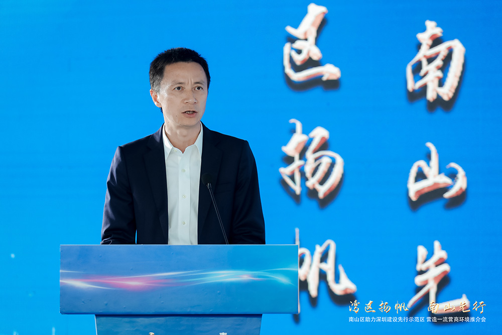 推介會(huì)伊始,南山區(qū)委副書(shū)記、區(qū)長(zhǎng)黃湘岳做了南山營(yíng)商環(huán)境的主題致辭。