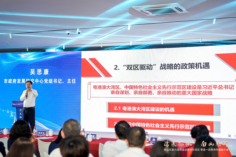 吳思康主任在演講中指出,南山區(qū)政府積極推動(dòng)經(jīng)濟(jì)高質(zhì)量發(fā)展,緊抓粵港澳大灣區(qū)、建設(shè)先行示范區(qū)“雙區(qū)驅(qū)動(dòng)”戰(zhàn)略機(jī)會(huì),竭力營(yíng)造穩(wěn)定公平透明、可預(yù)期的國(guó)際一流法治化營(yíng)商環(huán)境,彰顯了為深圳建設(shè)中國(guó)特色社會(huì)主義先行示范區(qū)貢獻(xiàn)南山力量的信心、努力和決心。