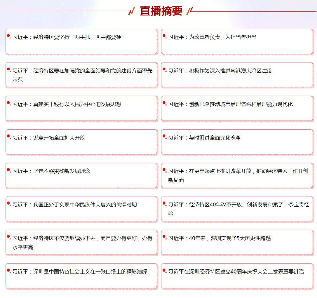 今年是深圳經(jīng)濟特區(qū)建立40周年,而今天深圳經(jīng)濟特區(qū)建立四十周年慶祝大會在廣東省深圳市隆重舉行。中共中央總書記、國家主席、中央軍委主席習(xí)近平在大會并發(fā)表了重要講話。
